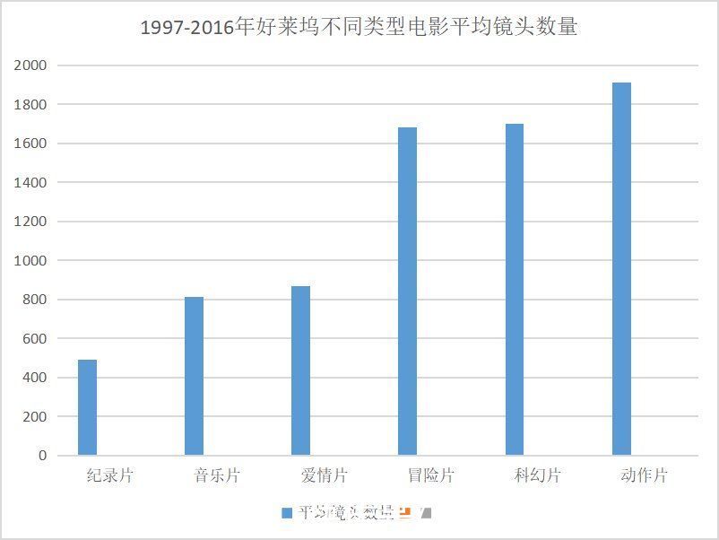 英国学者史蒂芬·弗朗斯也做过类似的研究,在对1997年至2016年内发行的好莱坞电影进行统计后,他指出,就电影院上映的电影来说,平均镜头数量大约是1000-1500个。这意味着在一部90分钟的电影里,平均每5秒就会切换一次镜头。